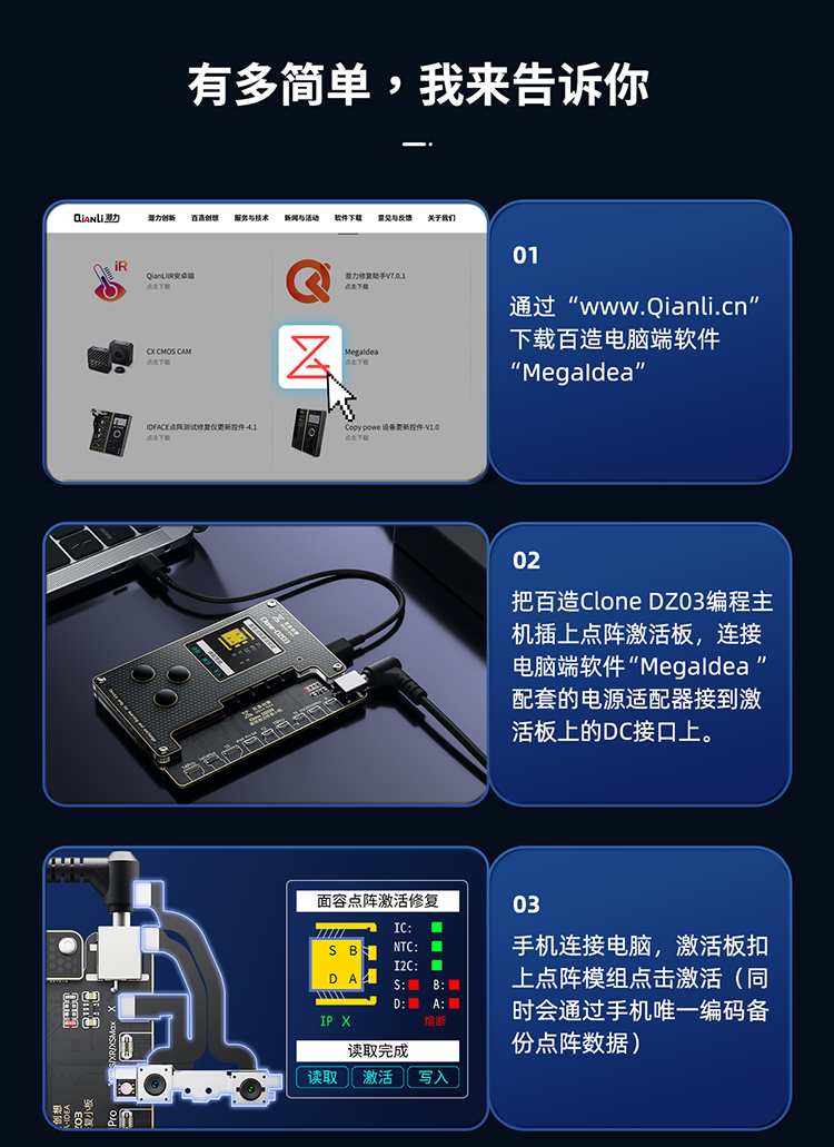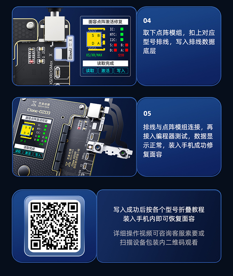 免拆点阵修复、电池检测修复、感光原彩修复