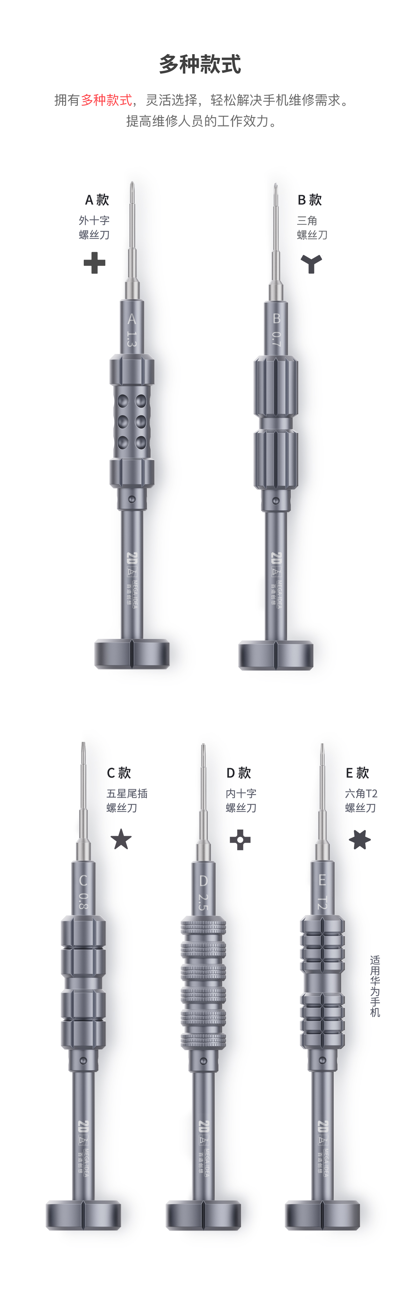 类型E:六角T2螺丝刀