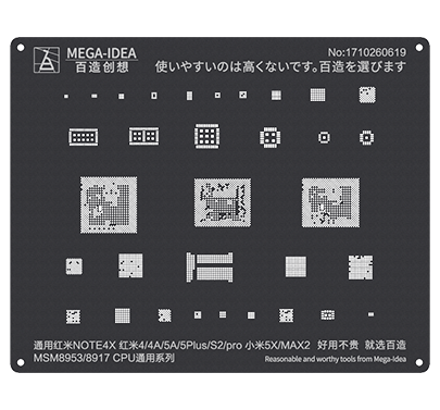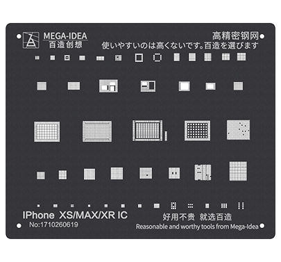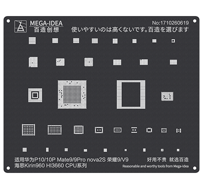 Mega-Idea Reballing Black Stencils, Square Hole with round angle not only can make the tin balls more round and plump but also can prevent the tin balls from getting stuck